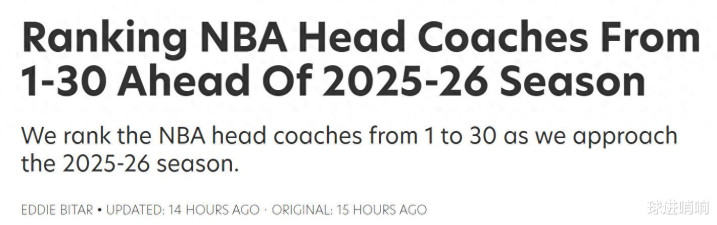 火箭乌度卡第4名! 美媒公布新赛季主帅排名: 湖人雷迪克14科尔第3