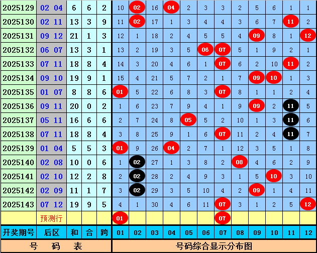 体彩大乐透第25143期奖号为:03 04 18 24 29+07 12,前区奖号012路比为3:1:1,奇偶比为2:3,大小比为3:2,后区2路号码轮空。