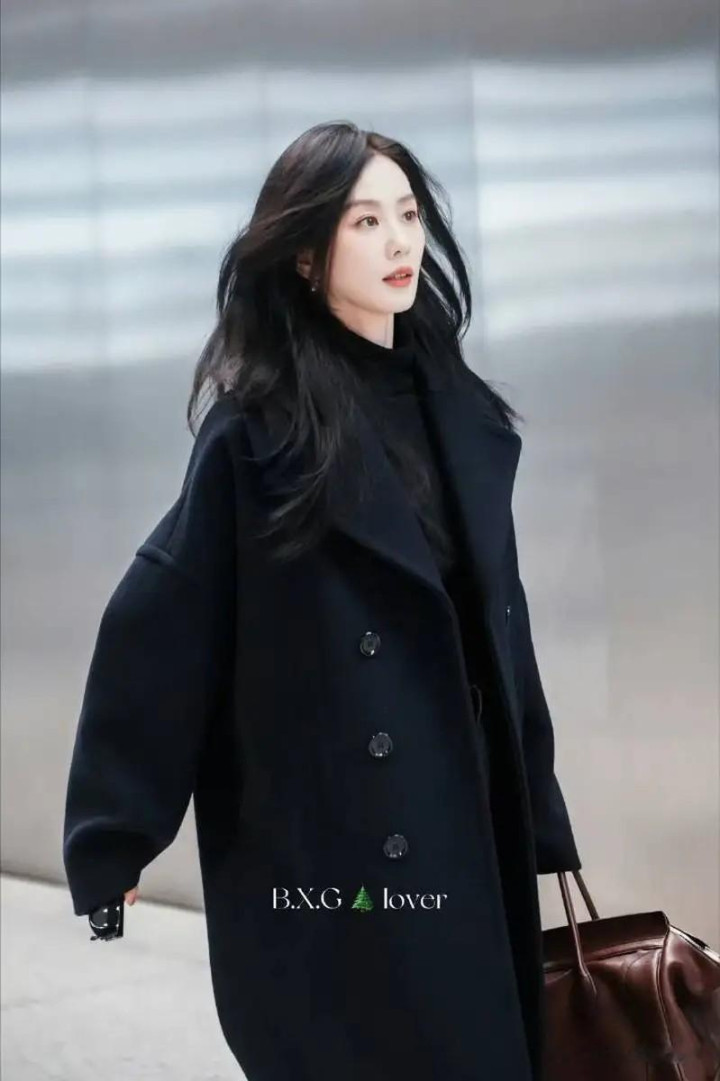 黑色大衣勾勒出她纤细的身姿,在冬日的街头显得格外醒目。刘诗诗微微仰起脸,任由阳光洒在精致的五官上,金色耳环随着她的动作轻轻摇曳,折射出细碎的光芒。她忽然停下脚步,对着街角一家老式照相馆的橱窗露出怀念的神色。